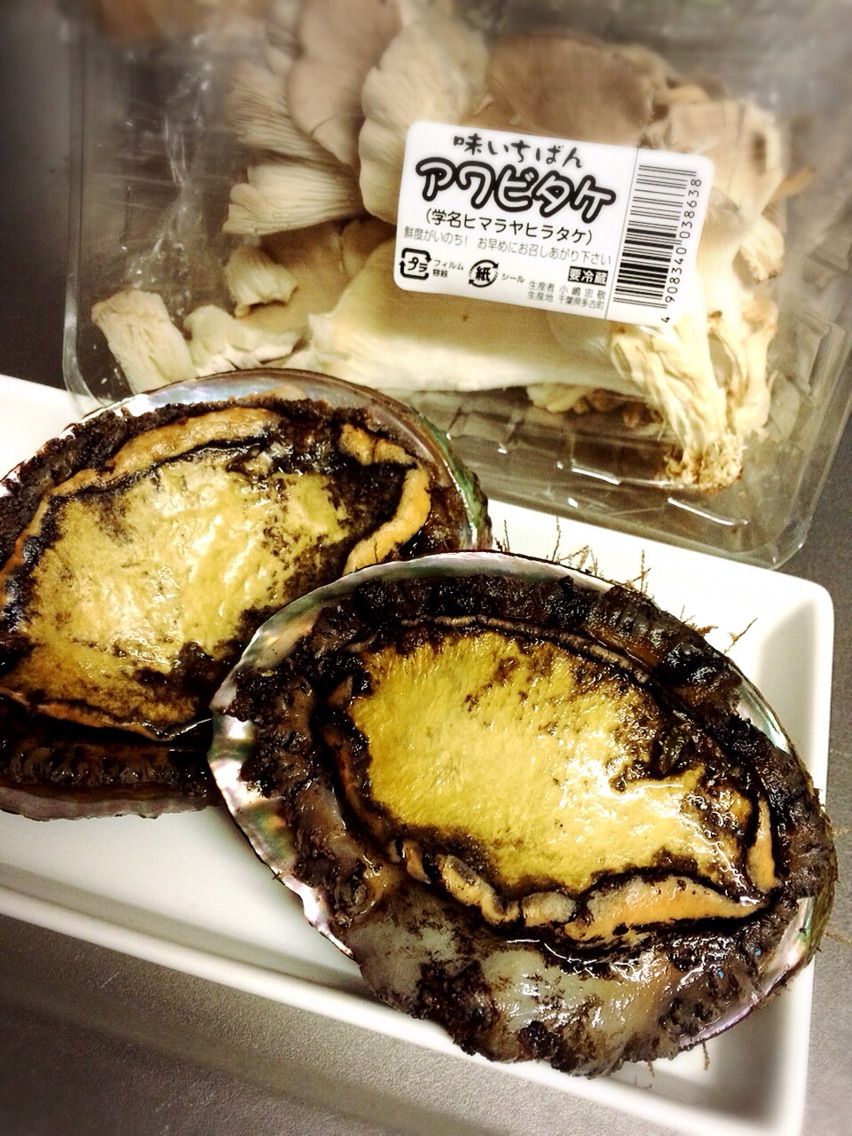 私の父は青森県は北津軽郡の日本海に面した小さな町の漁師です。父は毎週の様に定期便を送ってくれます。我が家の冷凍庫は9割魚介類で埋め尽くされています。アワビタケを見た瞬間!アワビ!と思いました。そんな我が家のお夕飯です。海の幸、山の幸、畑の幸に恵まれ幸せいっぱいの食卓です。