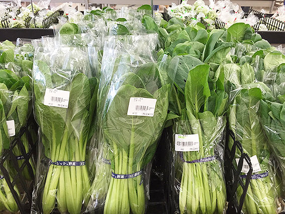 軟弱野菜に分類される、ねぎや小松菜、春菊は県内シェアの40%近くを占めるほど、栽培がさかんに行われています。(ひょうご都市農業支援センター資料より) 売り場の様子を見てみると、葉物野菜が潤沢に並べられていました。