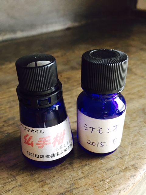 手首の内側にほんの少しのせて頂くと濃厚で気高い、キリリとした爽やかな香りがしました。(右側はシナモンアロマの試作品)販売が待ち遠しいです。佐賀で見つけた「仏手柑」はナンバーワンを目指し、オンリーワン作りに取り組む富田さんの希少な柑橘でした!実はこの他にも柑橘の「ジャバラ」「ゲンコウ」といった希少な品種や「黒いちじく」「シナモン」も栽培されており、こちらはまた次回にレポートさせていただきたいと思います。