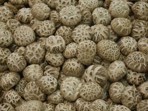 前編でご紹介した大家さんが栽培されている「菌興115号」の乾シイタケ。全国規模の品評会で上位を独占する人気品種で、高い評価を得ています。全農の乾シイタケの規格は20以上あり、「どんこ」と「香信」に大別されますが、「どんこ」の中でも、傘に白い亀甲模様ができる「花どんこ」は数がきわめて少ない最高級品です。