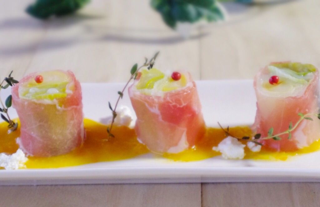 下仁田ねぎ(群馬県 JA北郡渋川) は蒸して生ハムで巻きました