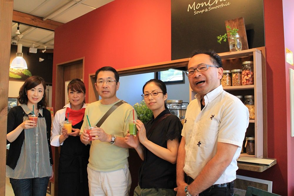 宇都宮市に4月にオープンしたばかりの野菜ソムリエの店「Mon chou(モンシュ)」をご紹介させていただきます。Mon chouとは、野菜ソムリエがセレクトしたフレッシュな野菜や果物をその場でスムージーやコールドプレスジュースなどで楽しんでいただけるお店。スタッフは全員ジュニア野菜ソムリエ、または野菜ソムリエ資格を保有しています。つまり野菜ソムリエ会えるお店なのです。昨日は、日本野菜ソムリエ協会の理事も務める松野社長が視察に来られ、ご案内させていただきました。