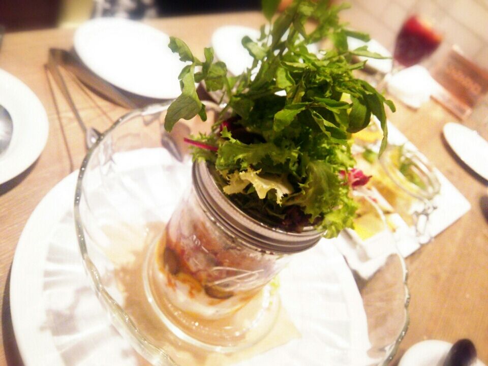 話題のジャーに入ったサラダをテーブルで盛り付けて下さいます