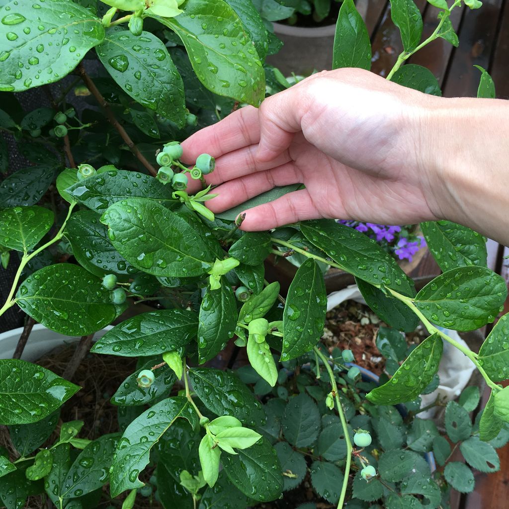 可愛い白い花が終わって直ぐに実を付けました。これが青く色付くと、毎日うちには可愛らしい、いたずらっ子が沢山遊びに来ます!