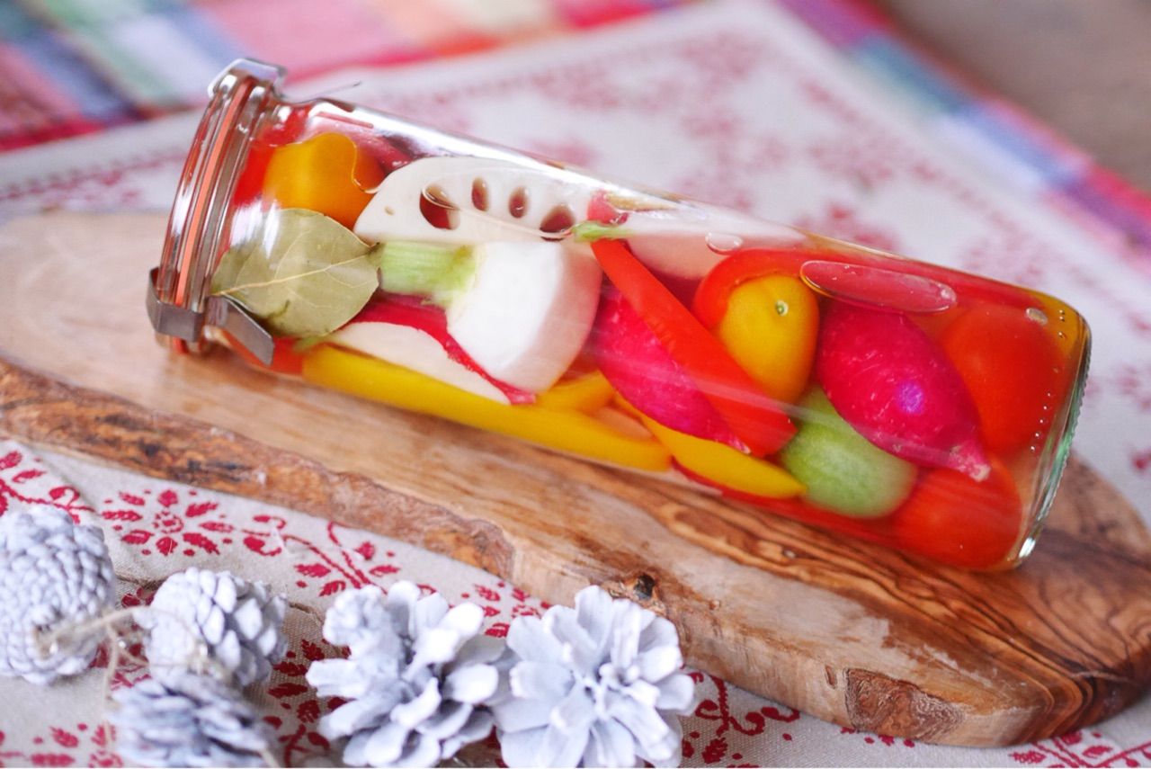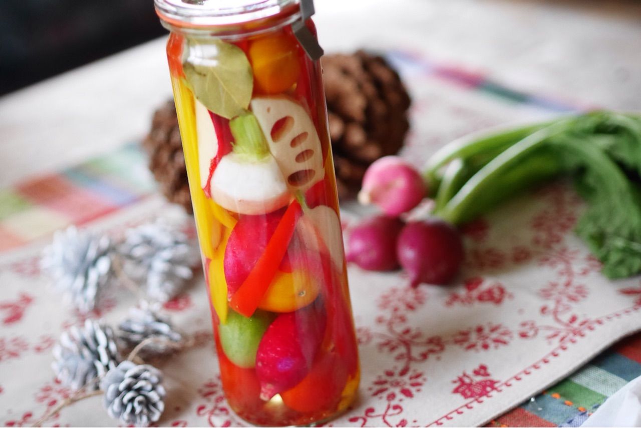 私はピクルスの出来上がりが楽しみ