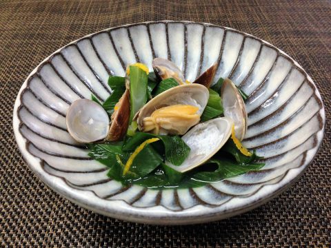 蒸しても香り豊かな岩津ねぎ。あさりの酒蒸しもねぎを加えることで