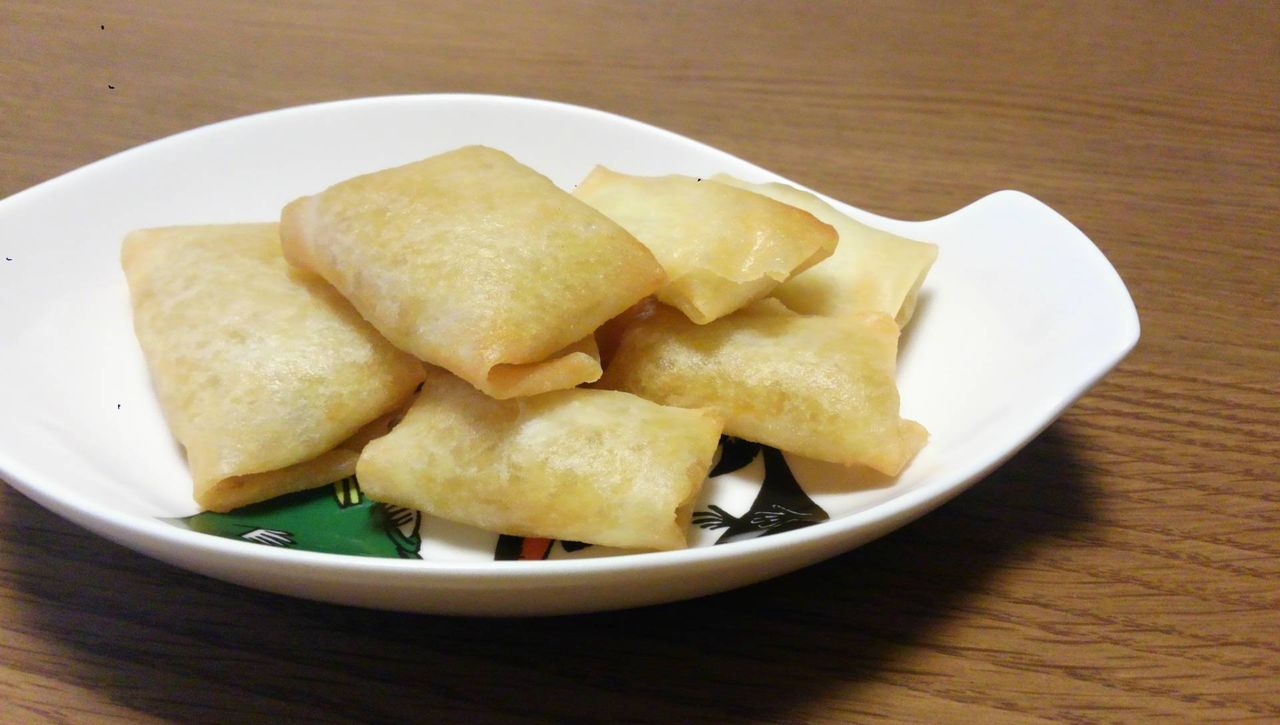 焼き芋にし、つぶしたものを春巻きの皮で 巻きおやつに