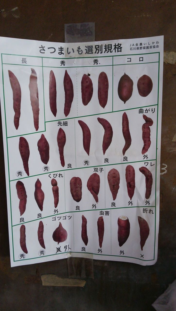 サイズは3L~4Sまで36もの等階級があり、地元では「S」が最も人気で 小ぶりのサイズを焼き芋にするのが好まれています。