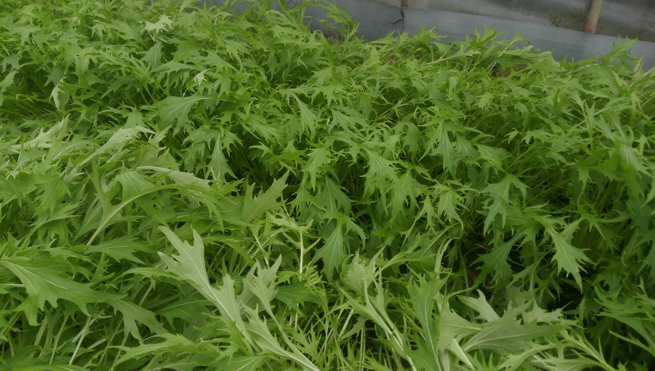 ハウスでは漢方由来を主体とした堆肥を使用して育てられた水菜・小松菜が周年栽培されています。