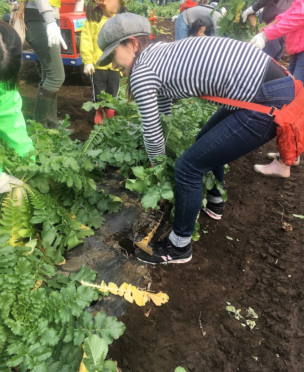 「そんなんじゃ全然だめだめ~!葉をまとめて小脇に挟んで、大根の上を逆手に持つ。ぐっと腰を下ろして膝を延ばす時の力でまっすぐ上に抜くんだよ」 とご指導いただき…